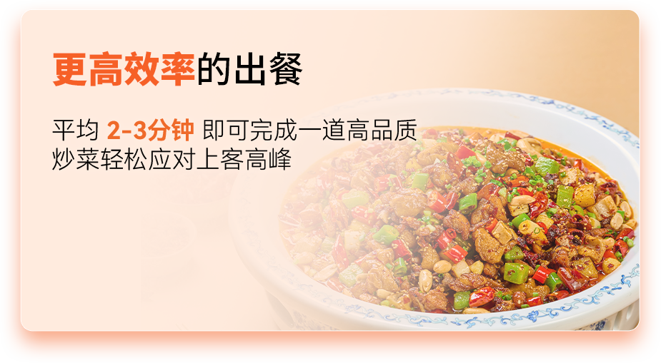 适用场景:湘菜、粤菜、川菜、鲁菜、东北菜小炒标准化出餐稳定度平均提升至99%